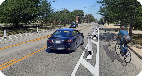 Separated bike lanes along E. 55th would not only provide a safe & comfortable north-south connection for bicyclists, but would also slow down traffic to improve safety for motorists and pedestrians by narrowing the roadway.