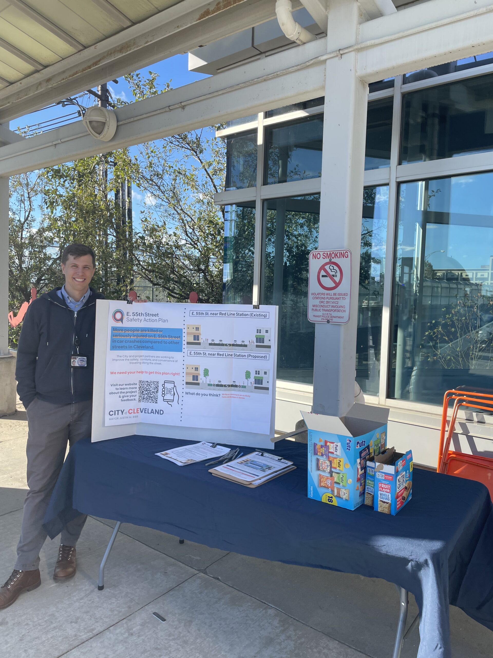 In early 2023, Bike Cleveland convened a meeting of the Community Development Corporations serving neighborhoods along E. 55th to discuss the high number of traffic crashes on the corridor. Safe streets advocates across the organizations agreed that improvements were urgently needed up and down E. 55th. The coalition – which includes St. Clair-Superior Development, Famicos Foundation, Midtown Inc., Burten Bell Carr, Slavic Village Development, LAND Studio, Cleveland Metroparks, and GCRTA – advocated for the prioritization of safety improvements on E. 55th.