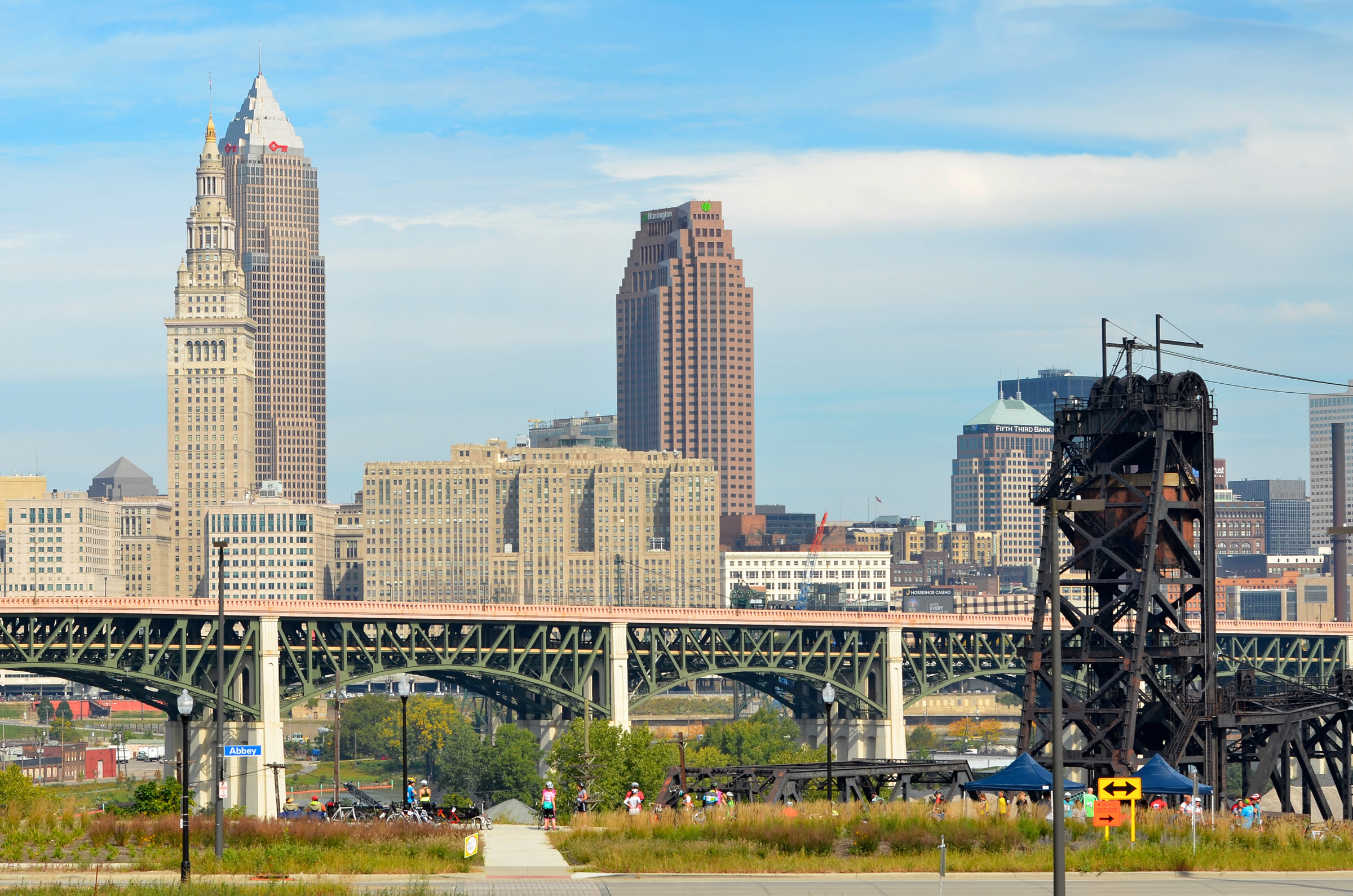 My wife and I chose the metric half-century, which kicked off at 8:30 in the morning, and hour after the full metric riders left the starting gate. Shaking the sleep out of our eyes after the long night (and ride) the previous evening, we grabbed a quick breakfast (provided free for all riders) in front of the registration stations, then headed out on the road. The route bore east from Edgewater, running along Detroit Avenue through downtown, where it turned into Superior, then staying true for several more miles eastward along Superior and St. Clair before heading north to the lake shore and then eventually south through Rockefeller Park.
