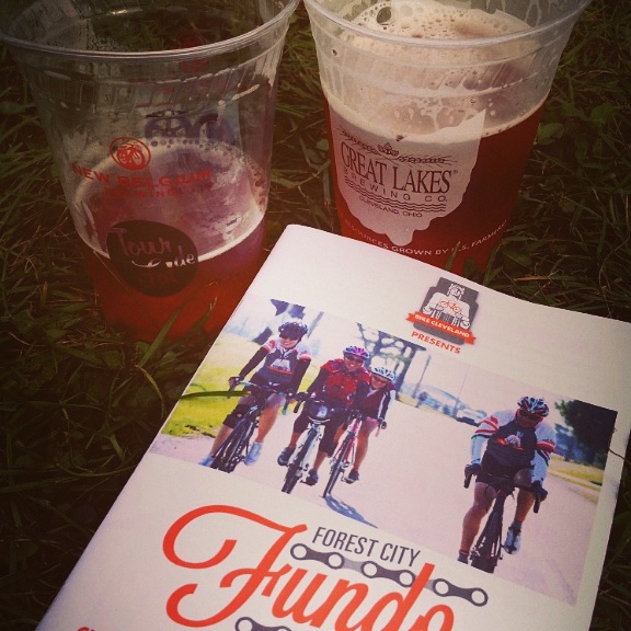 Afterwards, too tired to do much but sit around and relax, we enjoyed the included post-race lunch of sausages, pierogies and salads, along with the beer afforded by our complimentary beer tickets, and chatted with other participants as they returned from the ride.