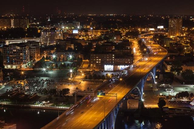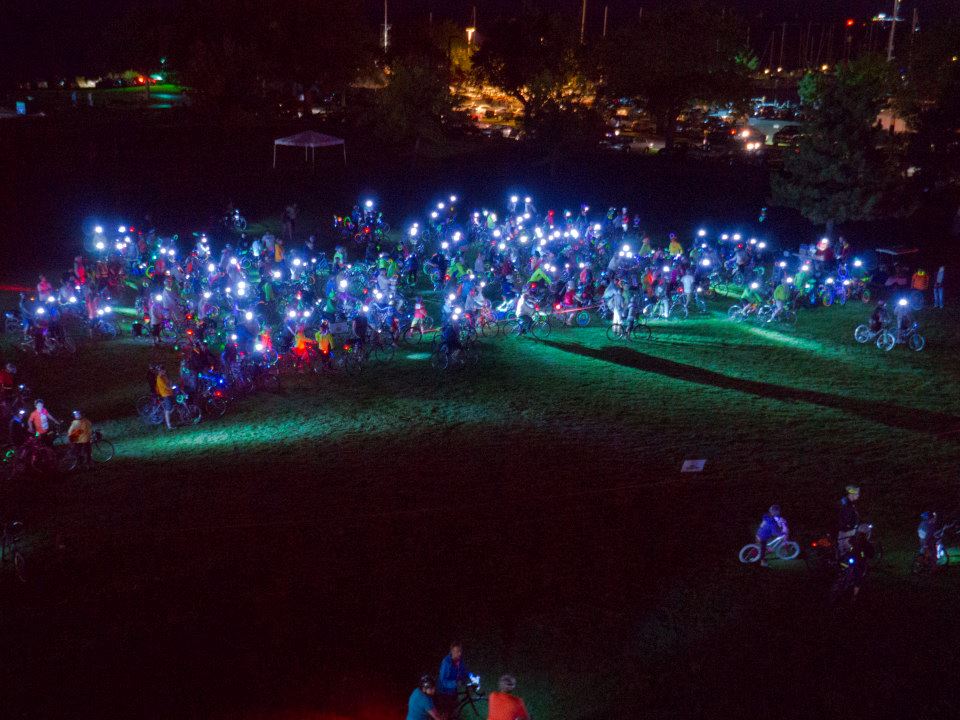 The city’s first annual “urban cycling festival” included both bike rides and races and nearly constant live music on a huge stage set up in NEOCycle’s “Hub” in Edgewater, including a Saturday night appearance by indie darlings (and Cleveland natives) Cloud Nothings. The performance followed the evening’s spectacular Night Ride, which featured 1,500 people (including my wife and I) on every manner of glowing, flashing and blinking bikes, riding a 7.5-mile loop from Edgewater to the Rock and Roll Hall of Fame that included a breathtaking view of the city along the Cleveland Memorial Shoreway, which was partly shut down temporarily for the exclusive use of riders, who had the option of making two laps around the course or heading back to The Hub for refreshments or treats from one of the many food trucks that set up shop at Edgewater for the weekend.
