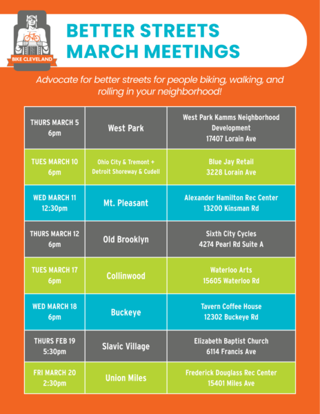To support and empower Cleveland residents to improve the safety, comfort, and accessibility of our streets, Bike Cleveland's neighborhood committees advance hyper-local infrastructure, advocate for better policies, and build community around alternative transportation.