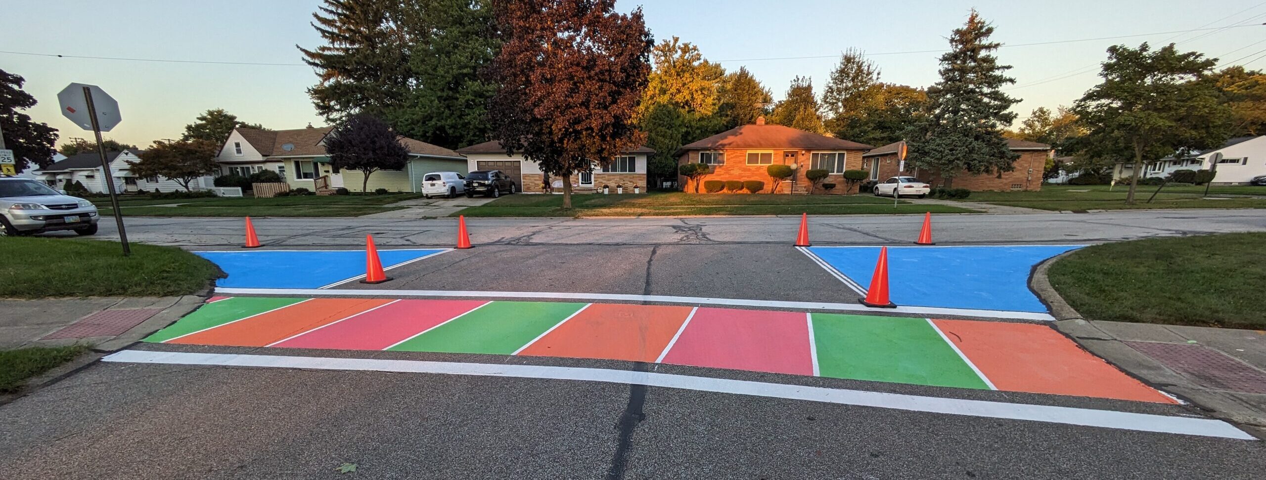 We recognize that paint is not as effective as physical traffic calming, but there is still evidence that street art can improve safety. One study found that street art can reduce crashes involving pedestrians & cyclists by 50%.